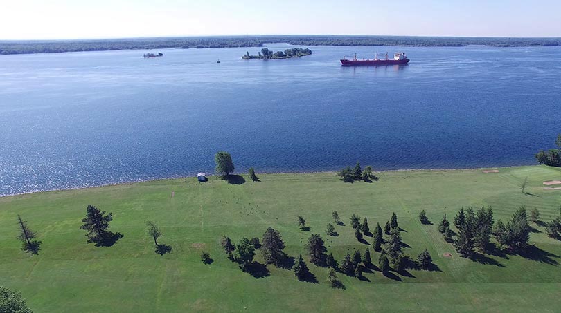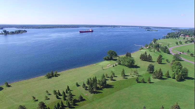greens, fine old trees and fantastic view of the St. Lawrence River from